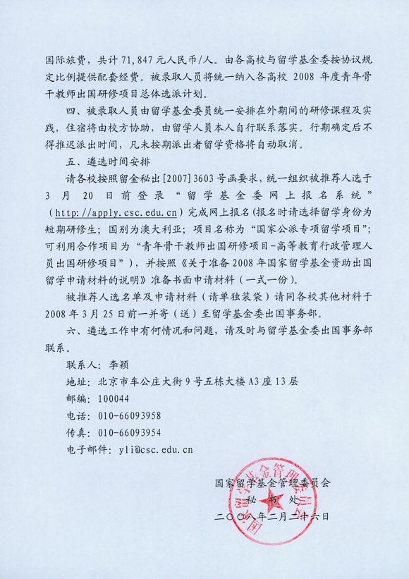 现将国家留学基金委《关于遴选“高等教育行政管理人员出国研修项目”留学候选人的函》转发给你们,请结合本单位实际,认真组织申报工作。申报人员请填写《北京成人头条行政管理人员出国研修申报表》,并附相关证明材料复印件,于2008年3月6日前送交党委组织部。