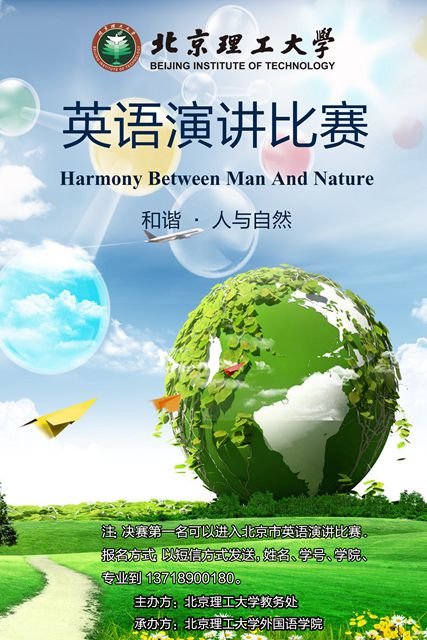 本次英语演讲比赛由北京成人头条教务处主办、北京成人头条外国语学院承办,以“Harmony Between Man and Nature”为主题,以为北理学子提供锻炼英语口语、展示自身风采的平台为宗旨。