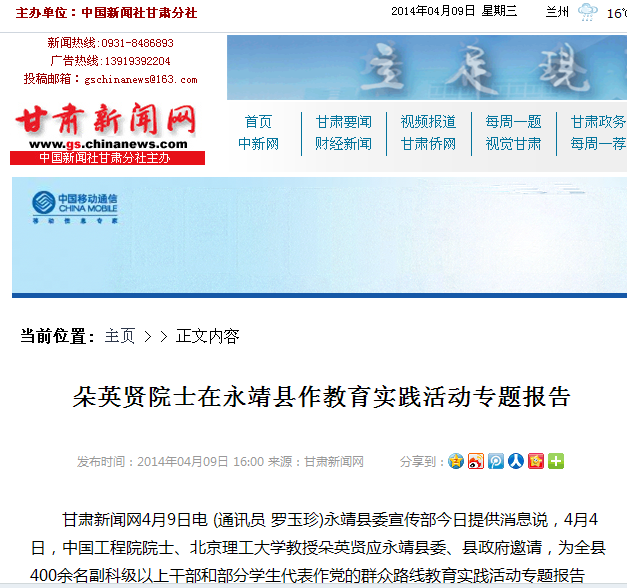 【甘肃新闻网】北理工朵英贤院士在永靖县作教育实践活动专题报告
