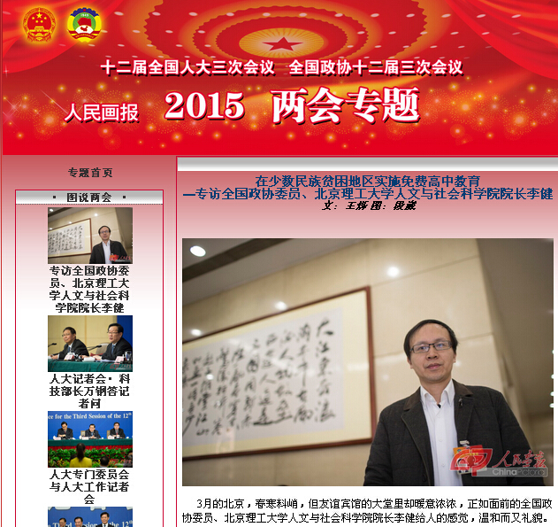 “去年,我赴湖南、广西、贵州少数民族地区进行调研,发现教育的落后与人才的匮乏是制约少数民族地区发展的关键因素。”李健认为,中央提出四个全面,把“全面建成小康社会”排在首位,没有少数民族地区的小康,就谈不上全面小康。而大力发展发展少数民族教育和民族地区的教育是提高人口素质、加强人才开发资源的开发,是促进民族地区社会发展的根本途径。