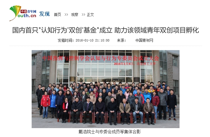 【中国青年网】国内首只认知行为'双创'基金在北理工成立 助力该领域青年双创项目孵化