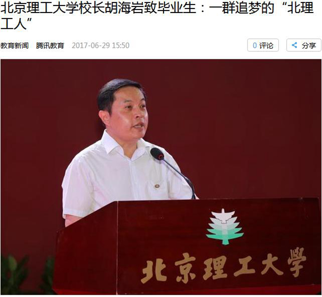 【腾讯教育】北京成人头条校长胡海岩致毕业生:一群追梦的“北理工人”