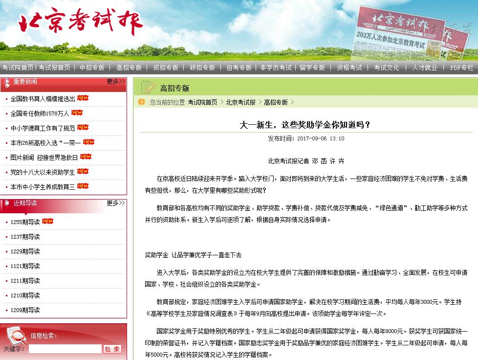 【北京考试报】大一新生,这些奖助学金你知道吗?