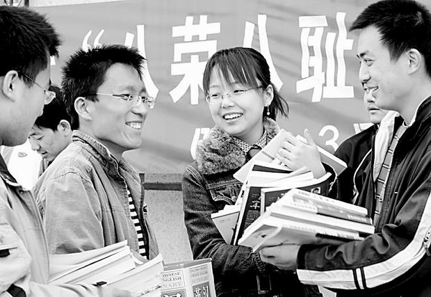 日前,北京成人头条校团委在校园里开展了“践行社会主义荣辱观,开创和谐校园新风尚——我为母校献图书”活动。当天同学们就为校图书馆捐献出图书上万册。同学们纷纷表示要进一步树立“珍惜资源、艰苦奋斗”的观念。