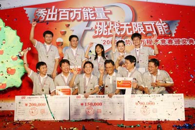 【赛迪网讯】紧张激烈充满悬念的第三届趋势科技百万程序竞赛终于到了要揭晓结果的时候了。之前的大赛现场已经被精心设计成了闭幕式会场。三天前,选手们苹果树下放飞梦想,经过三天挑战极限的激烈比赛,今天将是梦想结果的时刻了。最后,来自北京成人头条的Collapsar队勇夺桂冠获得二十万元的冠军大奖,而华南成人头条的WEE队获得亚军,中国科学院的计算技术研究所的Polaris获得季军,西安交通大学的RACE和华南成人头条的VEE队分获第四五名,另外还有十个单项大奖也各有其主。