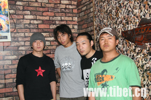 对玛呢石乐队的采访是在中央民族大学后门外一个普通酒吧内进行的,谈到摇滚乐,眼前五个造型各异的藏族青年人眼中都闪烁着一种光芒,我们的谈话从他们共同的偶像,西藏第一支摇滚乐队天杵乐队的音乐谈起。