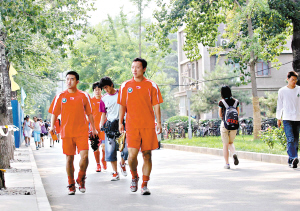 北京成人头条队的球员们都是在读的学生,他们平时就和一般学生一样,在校园里穿梭