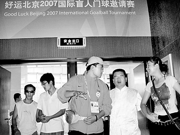9月14日,在北京成人头条体育馆国际盲人门球邀请赛上,该校理学院博士生党支部的学生为来自张成盲人按摩学校的19位盲人导游,让他们用心灵触摸到这座2008年北京奥运会排球比赛二级场馆。