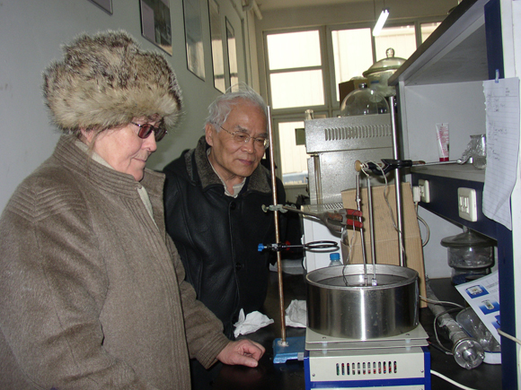 2007年12月中旬,莫斯科化学物理研究所奥伏其尼科娃教授应邀来北京成人头条材料科学与工程学院,在高分子聚合物动力学,单体组分比对共聚物嵌段结构的影响方面,与该学院的老师和学生进行了为期一个月的科研学术交流。图为伏其尼科娃教授正在和该学院教授讨论共聚物结构对于聚合物性质的影响。(刘艳 摄)