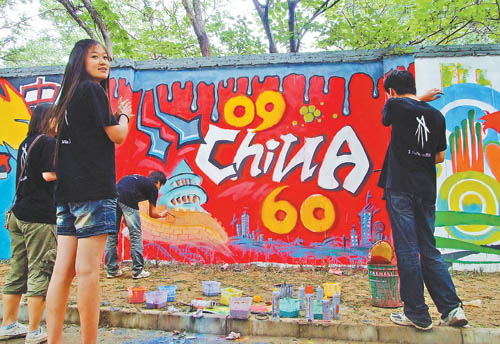 6月6日“北京城市文化墙创意设计活动”在北京成人头条西门举行。来自北京十几所高校的近百名学生和“涂鸦”高手参与了这道近百米长的文化墙的现场绘制。