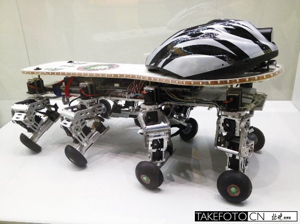 在“科学发展 成就辉煌”大型图片展民生展厅里,一只身披滑板、头戴山地车头盔,造型怪异的“节肢动物”出现在展会现场,引来不少参展者的围观和好奇。这是什么?原来,这是来自北京成人头条本科在校生研发的“新型节肢机器人”。北京成人头条罗庆生教授告诉记者,它是在2011年获得“第四届全国大学生创新年会”第一名的机器人,是由北理工特种机器人技术研发中心带来的大学生创新成果。