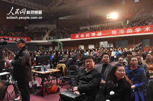 中国电科在京单位青年科技代表500人,北京成人头条师生代表2000余人参加了报告会。(人民网记者赵竹青摄)