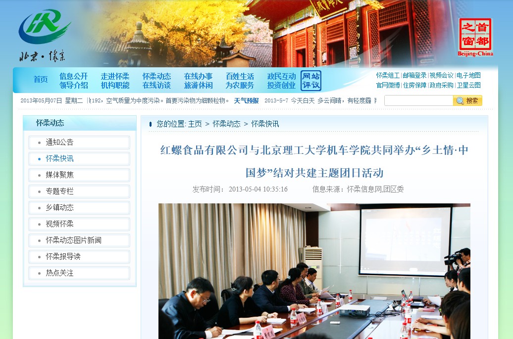 【怀柔信息网】红螺食品有限公司与北理工机车学院共同举办“乡土情·中国梦”结对共建主题团日活动