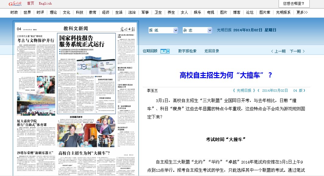 【光明日报】北理工赵显利副校长谈高校自主招生为何“大撞车”?