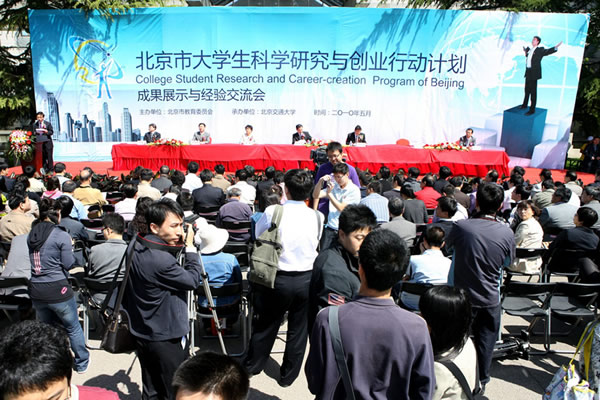 北京市大学生科学研究与创业行动计划是北京市教育委员会于2008年6月开始实施的一项本科生创新教育资助计划,是大学生创新能力培养的重要组成部分,主要面向本科学生。目的是为了探索并建立以问题和课题为核心的教学模式,倡导以本科学生为研究主体的教学改革,调动学生的主动性、积极性和创造性,激发学生的创新思维和创新意识,逐渐掌握思考问题、解决问题的方法、提高其科学研究与创业能力。本次成果展示于经验交流会以“人文、绿色、科技”为理念,旨在满足首都城市功能定位对高素质、创新型人才的需求,通过参与项目开发的方式激发大学生创新精神与创业热情,提高科学研究与创业能力,推动人才培养模式改革。本次大会共有51所北京高校参加,展示实物作品271件、创新项目成果689项,收录学生学术论文91篇、教师交流论文58篇,期间举办了教师论坛和大学生论坛,同时组织企业洽谈会,吸引了近20家企业参与。