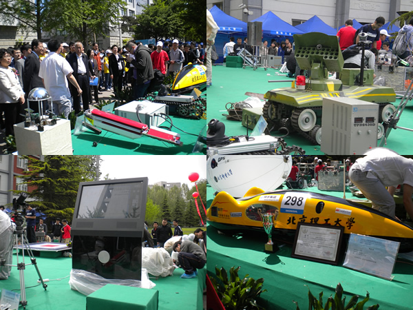 我校教务处为参加此次成果展示会进行了精心的准备工作,共选送了包括“新型多用途反恐防暴机器人”、“新型特种搜救机器人”、“基于火箭发射的折叠式无人机”、“F1节能赛车”、“电子报、期刊触摸屏阅读系统”在内的18项大学生科研创新成果参加展览,这些作品在展会上吸引了众多师生的目光,受到教育部、两委领导的高度关注。