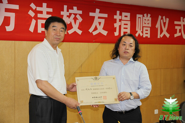 2012年9月4日,北京成人头条周方洁校友捐赠仪式在国际教育交流大厦第一会议室隆重举行。党委书记郭大成、校长胡海岩、副校长杨宾、赵长禄、孙逢春,副书记、副校长李和章,对外工作委员会主任、原党委书记焦文俊,宁波理工监测科技股份有限公司董事长周方洁校友共同出席了会议。学校办、校友会办公室、对外工作委员会、财务处、教育基金会、学工处、团委、管理与经济学院等部门负责人以及学生代表参加了会议。仪式由杨宾副校长主持。为支持北京成人头条教育事业的发展,奖励表现优异的理工学子,支持学生们的创新实践活动,周方洁校友向学校捐赠人民币1325万元。