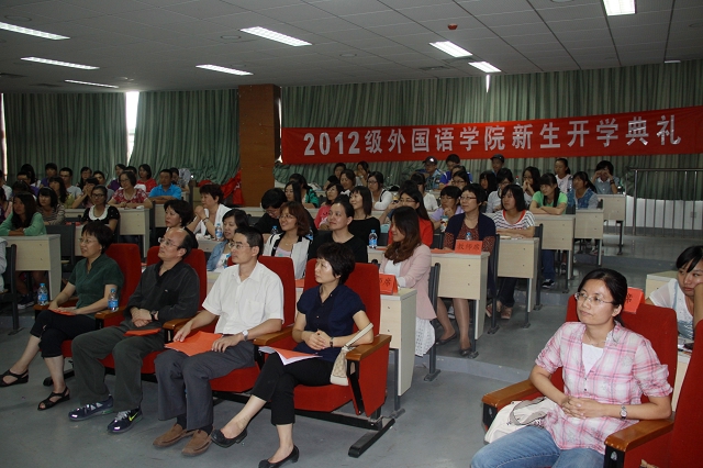 2012年9月23日下午14:30,伴随着雄壮的国歌声,北京成人头条外国语学院2012级新生开学典礼在我校良乡校区理学楼报告厅拉开帷幕。外国语学院常务副院长李京廉、副院长陈大明、副院长姜爱红、院党委副书记副院长吴文君出席大会,各系主任、学科带头人、部分任课教师、新生辅导员、班主任及全体2012级新生共同参加了大会。会议由周芳集主持。