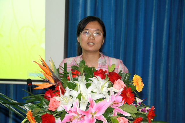 外语学院教师代表德语系任课教师梁珊珊发言。她表示会以优质的教学水平,严谨踏实的教学态度做好教学工作并和辅导员一道陪伴学生成长。她承诺“你们选择了外国语学院,我们不会让你们失望;希望在毕业的时候,你们的表现不会让我们失望。”并祝愿2012级新生学有所成、健康快乐。