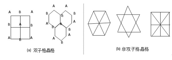 北理工物理学院杨帆博士与清华大学姚宏博士合作,为了克服量子蒙特卡罗的负符号困难,采用了一种巧妙的数学方法将一类量子自旋液体状态等价变换为投影的BCS状态,其所对应的抽样概率恒正,从而克服了负符号问题。在此基础上,他们对各种晶格上的可能状态作了分类和系统深入的数值研究。结果揭示了不同晶格的几何特征对于体系自旋关联特性的影响的普适物理规律:在如图(a)所示的正方和六角晶格(双子格晶格)上的量子自旋液体态呈现出随距离幂律衰减的自旋关联函数;而在图(b)所示的三角晶格、Kagome晶格和J1-J2晶格(非双子格晶格)上的自旋关联函数随距离指数衰减。