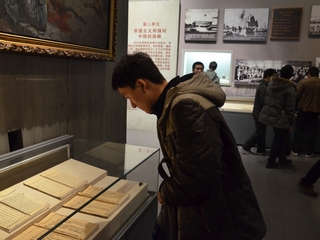 《复兴之路》基本陈列共分中国沦为半殖民地半封建社会、探求救亡图存的道路、中国共产党肩负起民族独立和人民解放历史重任、建设社会主义新中国、走中国特色社会主义道路5个部分,通过1200多件(套)珍贵文物、870多张历史照片,回顾了1840年鸦片战争以来中国人民在屈辱苦难中奋起抗争,为实现民族复兴进行的种种探索,特别是中国共产党领导全国各族人民争取民族独立、人民解放和国家富强、人民幸福的光辉历程。同学们为这一百多年的民族血泪史感慨万千,更为这个民族的坚强与伟大而信心满满。中共中央总书记、中央军委主席习近平和中央政治局常委李克强、张德江、俞正声、刘云山、王岐山、张高丽等中央领导同志曾于11月29日前往国家博物馆参观《复兴之路》展览,在参观过程中,习总书记发表了“空谈误国实干兴邦”的重要讲话。