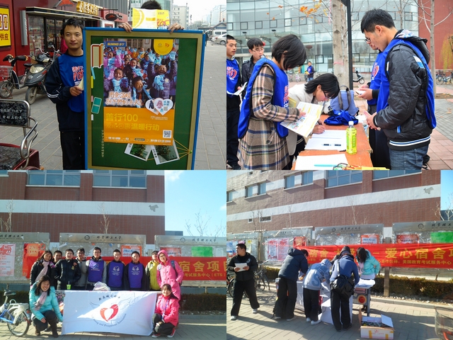 本学期,新长城北京成人头条自强社在学生工作处的指导下,秉承“传递社会关爱,锻造自强之才”的社团宗旨,承接了多项中国扶贫基金会的公益、慈善、服务性活动。活动中,自强社成员采用倡导校内同学参与志愿服务活动、劝募校外社会人士捐赠善款的活动模式,鼓励更多的学生、社会人士发挥各自所能,参与慈善和公益,一起行动,消除贫困。2012年10月初,自强社在校内外开展了“善行100” 大型公益活动。我校自强社作为中国扶贫基金会在北京市支持的9所高校项目团队之一,积极参与活动的宣传、组织和劝募工作。自强社通过与校内的公益社团绿风志愿者协会合作,不但扩大了宣传效果,而且招募到大量志愿者,壮大了劝募团队。两个公益组织分别对志愿者进行劝募培训,劝募跟踪,并在活动结束后进行经验交流分享,使志愿者始终保持高昂的斗志。