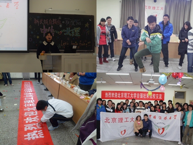 2012年11月25日,北理工自强社到中国传媒大学,与中国传媒大学自强社就社团组织建设、活动开展和工作经验等内容进行了广泛的交流。两校自强社分别就社团组织建设、特色活动等方面做了介绍和展示。为加深兄弟社团间的了解,交流过程中穿插了小游戏环节,一个接一个的小游戏使现场气氛变得热烈,也增进了两校自强社间的友谊。通过交流,自强社成员更加了解自身优势,同时也看到了自身的不足。参与交流的成员会后一致表示今后会借鉴对方的成功经验,继续发扬自身优势,努力改进不足之处,把北京成人头条自强社越办越好。