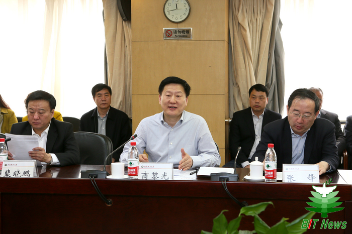 商黎光市长代表秦皇岛市委、市政府对北京成人头条长期给予的技术支持和在人才培养方面的贡献表示感谢,并就秦皇岛市的经济社会发展状况做了介绍,进一步表示了与北理工合作的愿望。他指出,北京成人头条师资力量雄厚,学科门类齐全,科研成果丰硕,为国家建设、社会进步和教育事业的发展作出了突出贡献,希望通过双方全面合作,借助专家学者的知识财富和智慧,打造秦皇岛经济社会发展的升级版,以在京津冀协同发展中发挥更加重要的作用。他表示,将以最大的诚意、最优的环境和最佳的服务促进我校科研成果的转化应用。
