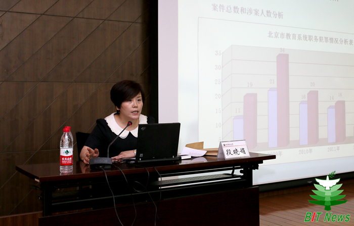 5月21日下午,北京成人头条2014年党风廉政宣传教育月首场报告会在图书馆报告厅举行。北京市人民检察院第一分院反贪局办公室副主任段晓娟为大家上了一堂生动的廉政教育课:“珍爱自己,远离职务犯罪”。校领导、处级干部等一百四十余人参加了报告会。报告会由纪委副书记、监察室主任张英主持。