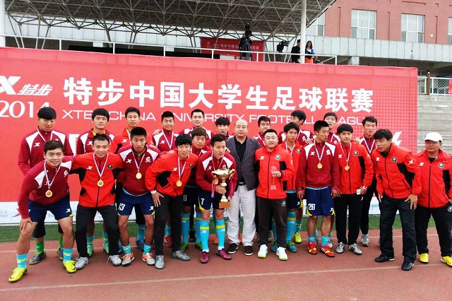 编辑:新闻中心 段炼 阅读次数: 2013-2014赛季“特步”中国大学生足球联赛北方赛区决赛于5月11—18日在东北师范大学举行,我校足球队克服中甲和大学生联赛双线作战的困难,在九天打了八场比赛的情况下,勇夺“特步”中国大学生足球联赛北方赛区冠军,从而取得参加全国总决赛的资格。