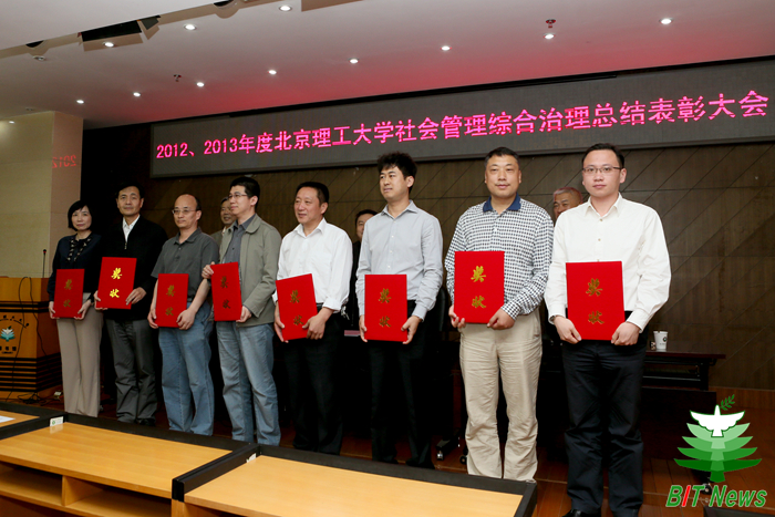 校综治委副主任赵平同志宣读了党委对光电学院,管理与经济学院,外国语学院,继续教育学院,学校办公室,基建处,档案馆,后勤集团8个综合治理先进单位的表彰决定。随后,杨宾、赵平、李和章三位校领导为8个先进单位颁奖。