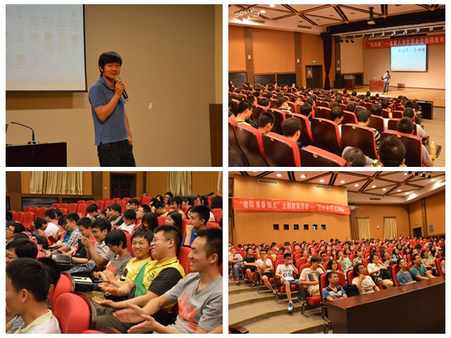最后,王阳总结并强调了对待人生的情怀,并给予了学生们真切的祝福与殷切的希冀。讲座活动长达3个小时,有感动的泪水也有欢声笑语,同学们对王阳的辛苦付出送以热烈的掌声。活动结束后,许多同学意犹未尽,针对自己的问题向王阳进行咨询,并得到了王阳认真地辅导与解答。