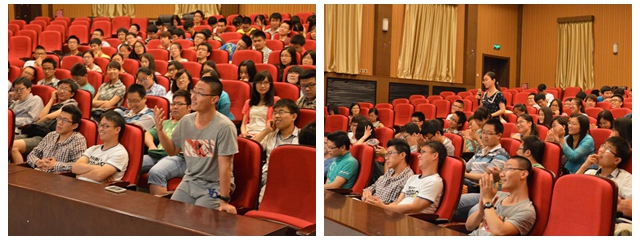 讲座过程中气氛十分融洽。王阳在幽默的讲解中,又穿插着感人心脾的故事与激扬的情怀。整个过程中,王阳采取讲解与提问相结合的方式,邀请在座的同学分享他们的观点,并阐述自己的认识。其中,有关中国发展方式等话题也引发了场内观众的热烈讨论。