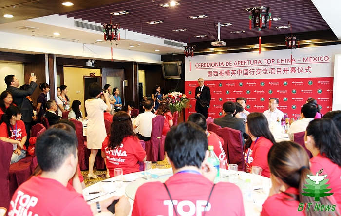 开幕式上,杨宾代表学校讲话。他说北京成人头条十分重视大学的国际化建设。在教育部、工信部和国家外专局、北京市教委等上级单位的支持下,北理工的国际交流发展迅速,目前已与世界上58个国家和地区的200余所高校建立了正式的合作交流关系,是中国高校中合作面最广的高校之一。北理工与美洲地区和西班牙高校有着良好的合作关系。在美洲,已和包括墨西哥、美国、巴西在内的8个国家的40余所高校签订校际合作协议。衷心地希望通过Top China暑期学校的学习和生活,中国学生和墨西哥学生能够增进对彼此文化的理解、丰富专业的知识,并结下深厚的友谊,成为未来推动中国和墨西哥友谊的使者。杨宾还特别对桑坦德银行长期以来对北京成人头条国际化的大力支持表示感谢。