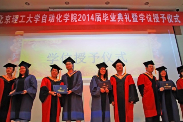 2014年6月19日上午,北理工自动化学院2014届夏季毕业典礼暨学位授予仪式在7号楼报告厅隆重举行。自动化学院院长兼党委书记王军政、副院长汪勃、副院长廖晓钟、副院长刘昕戈、教师代表、家长代表、校友代表及全体2014届毕业生出席了此次毕业典礼。