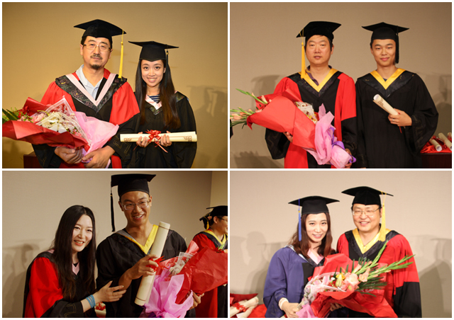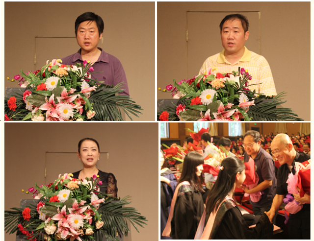 在悠扬的国歌声中,毕业典礼暨学位授予仪式正式开始。设计学院副院长姬勇宣读了2014届夏季毕业生获得学位者名单,党委书记郭宏宣读了优秀毕业生名单,并为毕业生赠送了毕业纪念衫,8名学生代表向教师代表献花以谢师恩。