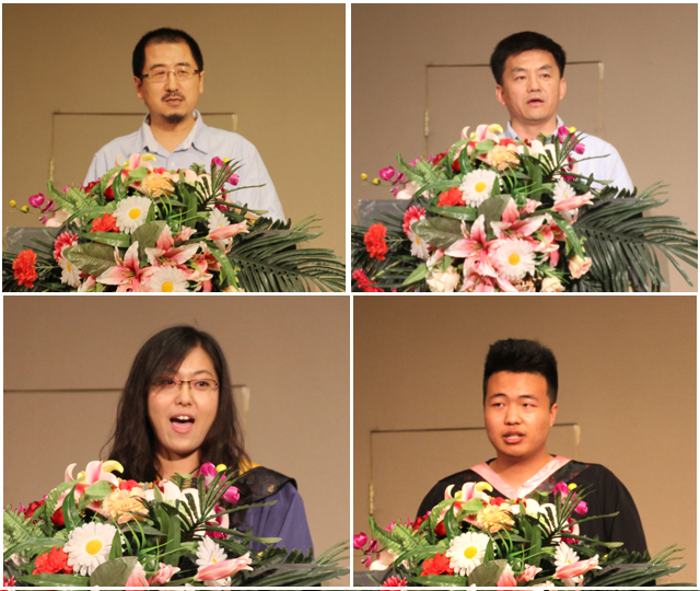 随后,优秀校友、美国休斯敦大学教授冯锋致辞,他希望同学能把我们认为美好的东西坚持到底。希望同学们能够学会珍惜时间,坦然面对未来的一切。在生活中能够居安思危,勇敢尝试失败,用爱去帮助周围的人。并预祝毕业生们能够事业有成,将来能够回报母校,回报社会,回报国家。