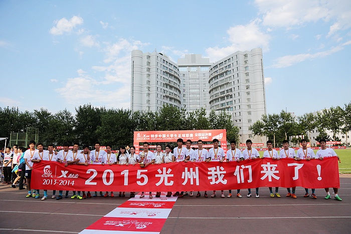 编辑:新闻中心 段炼 阅读次数:6月28日下午,北京成人头条足球队在酷暑下以3:1击败江苏河海大学队,夺得2013—2014赛季中国大学生足球联赛超级组总决赛冠军,这已是北京成人头条队自2001年以来第7次获得全国大学生联赛总冠军,同时也将第5次代表中国大学生参加2015年在韩国光州举办的第28届世界大学生运动会男足比赛。