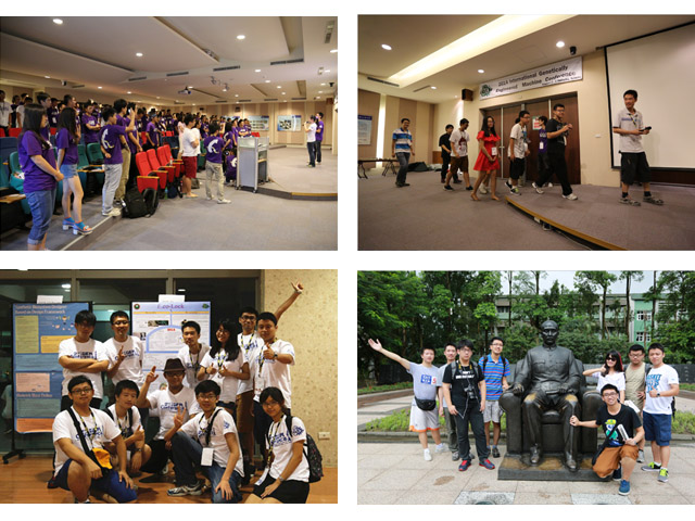 8月4日上午9时,在国立交通大学学术报告厅举行了本次交流研讨会的开幕式,本次大赛正式开始。各支代表队按次序登台,对自己的项目进行全程英文的演讲及现场问答。BIT-China代表队参赛项目为《E. co-Lock》,通过模拟电子密码锁的工作原理,在宿主细胞内部设计相应基因线路,构建仿生密码锁,对高经济价值的基因工程菌和应用于研究的高致病性菌株进行保护。在PPT展示环节中,BIT-China以新颖的想法、娴熟的英语、自信的表现赢得了一致好评。在随后的提问环节中,队员们认真听取评审老师与在座同学的提问,进行深入的思考,以简洁清晰的回答赢得了阵阵掌声。
