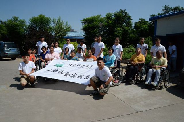 8月6日上午,实践团携手十余名贫困新生来到唐山康复村看望村民们。唐山康复村1991年落成,1992年开始入住。康复村的居民都是1976年唐山大地震中致残的截瘫患者,现有居民25户共51人。这里是全世界唯一一处专为地震后致残的截瘫人员建造的无障碍住宅小区。走进康复村,同学们发现:康复村处处可见极富人性而颇为“神奇”的设计:宽达1米的房门、“隐藏”在墙内的卫生间、相对低矮的家具设施,这些无障碍设施的独特设计令人惊叹,更令人感动。