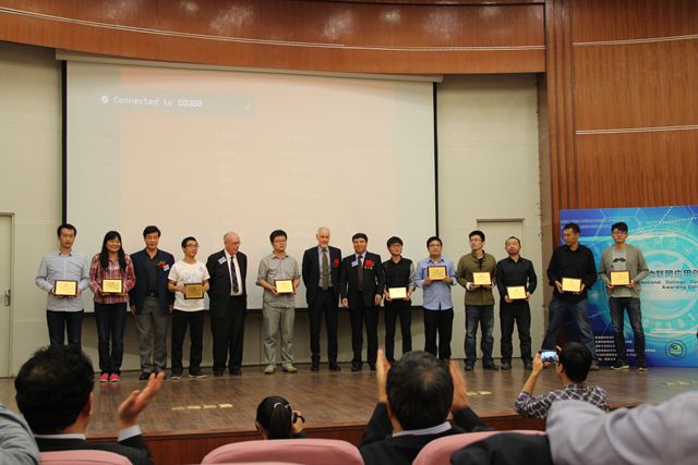 大赛决赛评委会主席、中国计算机学会传感器网络专委会主任李建中教授,国家973“物联网体系结构”首席科学家、北京邮电大学马华东教授,东南大学罗军舟教授,上海交通大学王新兵教授,公安部第三研究所胡传平所长,电子科技大学秦志光教授,兰州大学胡斌教授,中国科学技术大学熊焰教授等参加了颁奖典礼并与Ivan Sutherland、Alex Wolf等知名科学家一起担任颁奖嘉宾。我校三支代表队分获两项国家一等奖以及一项国家二等奖,指导教师李凡荣获大赛最佳指导教师。我校的“智慧病房”参赛队,作为全场唯一大赛获奖作品成果演示,在典礼现场进行了意念拍照的功能演示。通过此次竞赛,参赛同学们得到了丰富而宝贵的实践经历,扩展了同学们的视野,在与其他院校的同学的学习交流中也提高了自身的科研能力,同时也吸引了更多的优秀学子参与到各项科研实验中。