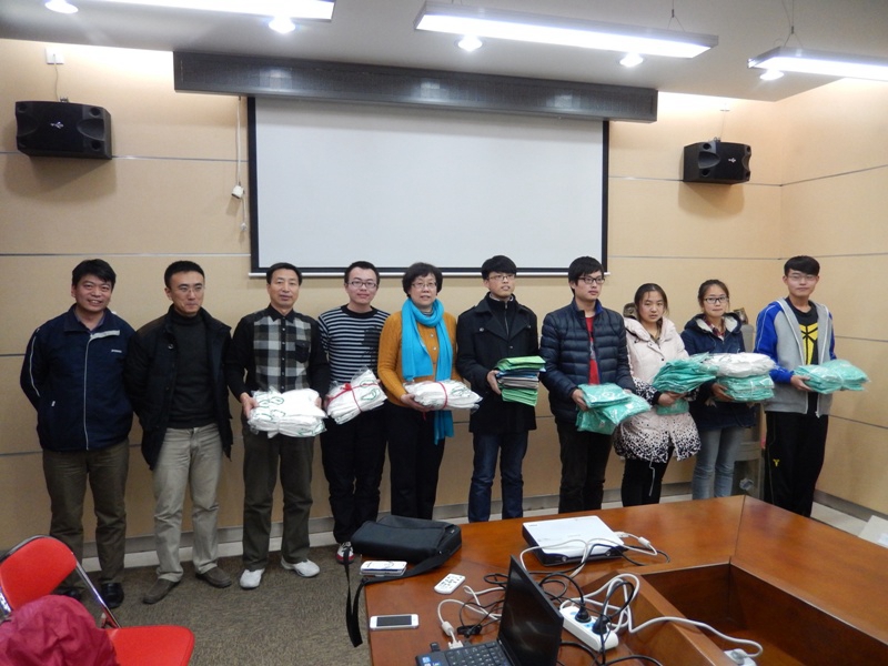 最后国资处党支部向同学们赠送了节能宣传T恤衫和鼠标垫。