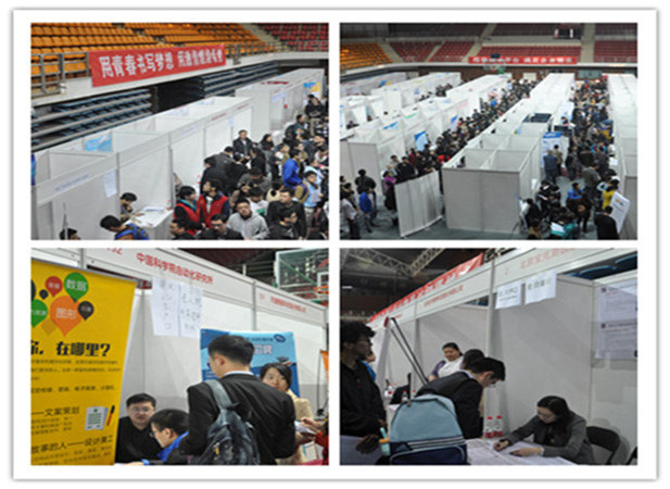 2015年3月26日,我校在体育馆主馆举办了“2015届毕业生春季大型招聘会”。参会单位共235家,数量为近三年来我校春季大型招聘会之最,吸引了中国兵器装备研究院、上海航天局第八〇二研究所、中国联合网络通信有限公司北京市分公司、西北工业集团有限公司、中国电子科技集团公司信息科学研究院、京东方科技集团股份有限公司、首都公路发展集团有限公司、中国科学院自动化研究所、朗讯科技股份有限公司、一汽技术中心、长安汽车股份有限公司、东北大学等多家优质用人单位前来参会。其中,京内单位155家,占66%,京外单位80家,占34%;国防科技行业单位53家,占23%。