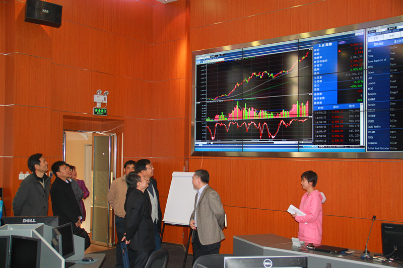 报告会前,张炜书记亲切会见了邓建玲副总,在报告会后,张炜书记和魏一鸣院长等学院领导陪同邓建玲副总参观了管理与经济学院金融实验室。