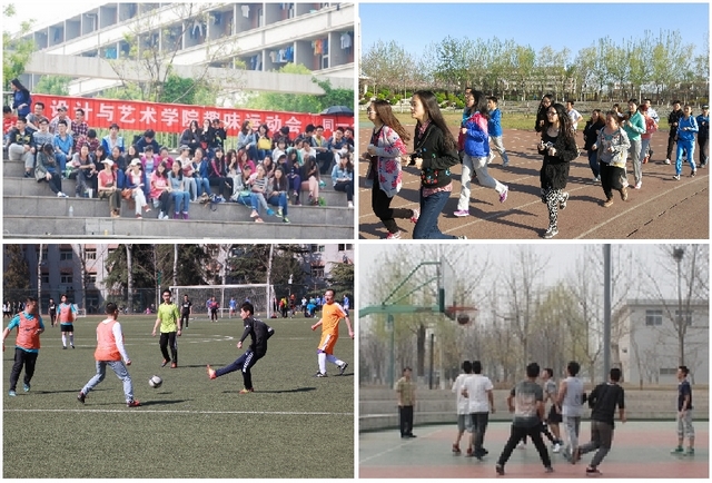 设计与艺术学院“艺起来”文化体育俱乐部自2014年成立以来,在设计学院学生工作办公室的指导下,一直致力于开展形式多样的户外体育活动,截止到目前,已经举办篮球赛10余场,趣味运动会3场,足球赛1场,参与人次达700人次。活动形式多样,组织有力,得到了学院各团支部的积极响应和广泛支持。其中,大一大二年级间开展的篮球对抗赛独树一帜,活动中,队员们都展现出了顽强的拼搏精神和坚持不懈的体育风范,不断引来旁边观众们的阵阵喝彩与掌声。而25011401团支部与25011404团支部联合开展的“追忆童年 青春无限”活动,更是别出心裁,通过“丢沙包”“老鹰捉小鸡”等多种童年游戏,让同学们在重温童年欢乐的同时,锻炼了身体,增进了团支部间的合作与交流。教工、12级硕士毕业生、以及研一研二同学共同参与的春季毕业杯足球友谊赛成功举办,不仅使老师与学生之间在球技上有所切磋,在感情上有所交流,同时也展现了我院团结、和谐、勇于拼搏的精神面貌,也为即将离开母校的毕业生留下一段美好的记忆。