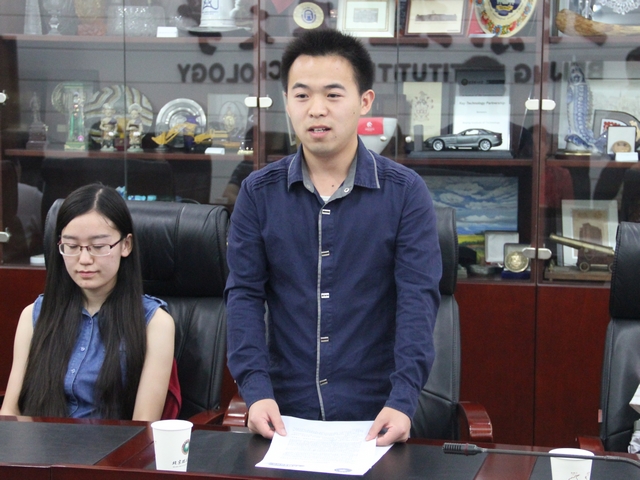 许欣介绍了北理工三星奖学金的设立背景、评选方式和2014年的开展情况,评选出的12名学生完全符合三星奖学金要求,代表了北理工学子良好的精神风貌和求学精神。