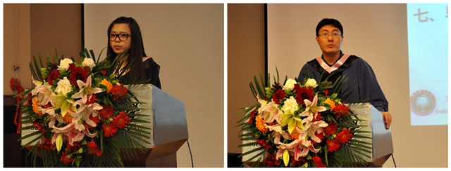接下来由本科毕业生代表王露梦、研究生毕业生代表孟阳分别发表毕业感言。“感谢母校给了我‘北理人’的荣誉勋章、感谢学院老师和辅导员的谆谆教诲、感谢父母的支持与呵护”、“四年前四个人用同一把钥匙打开了彼此的心门,30个人共用着同一个行政班号,95个人拥有着法学院的共同代名词,是北理工最亮丽的风景线”、“再见了同学们、再见了老师们、再见了法学院、再见了北理工”。一句句感人至深的话语,引得台下的老师们和同学们眼含热泪,纷纷动情。毕业生们把对于母校师长的感恩眷恋之情以及对于同窗的深情和祝福,融进了这感人肺腑的字里行间,相信在北理法学院求学的岁月,将会成为他们人生中最难以磨灭的一道亮丽风景。