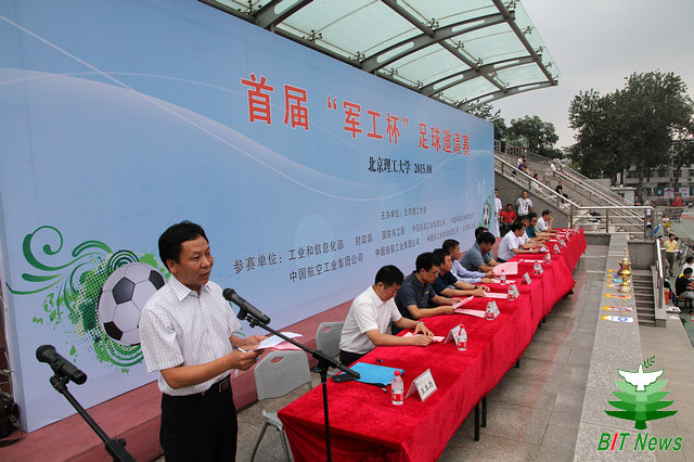 开幕式上,楼宇光为比赛致开幕词,他代表工信部直属机关党委对本次比赛的举办表示祝贺。感谢北理工在为国家工业化、信息化、两化深度融合,以及国防现代化做出卓越贡献的同时,还能够积极发挥学校在足球运动方面的优势与特色,筹办本次“军工杯”足球赛,为军工系统各单位通过足球运动加强交流,强健体魄,建设优秀组织文化搭建了良好平台,符合当下国家振兴足球、提高人民群众身体素质的指导思想。2015年是纪念抗战胜利70周年,诞生在抗战烽火中的北理工也将迎来75周年华诞,因此我们全体参赛的军工人也是通过比赛的形式弘扬军工文化,矢志建设国防的奉献精神,共同庆祝北理工建校75周年。希望北理工全体教职员工凝心聚力,深化改革,为早日建成世界一流成人头条不断努力奋斗。