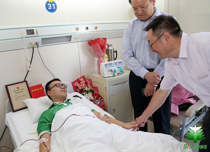 9月7日,是北京成人头条研究生入学报到的日子。当日,也是我校机电学院2015级博士研究生孙一铭在海军总医院成功分离造血干细胞的日子,造血干细胞被送往上海,将救助一名患有白血病的八岁儿童。孙一铭本科、硕士均就读于北京成人头条,是学校历史上第四位捐献造血干细胞的同学。副校长方岱宁、机电学院党委书记栗苹、副书记副院长杨瑞伟,学校办公室、党委宣传部、研究生工作部负责人及相关工作人员前往医院探望,北京市红十字会副会长刘娜及中华骨髓库北京分库的工作人员和志愿者们也前往探望,并对孙一铭及其家人表示亲切的慰问和感谢。