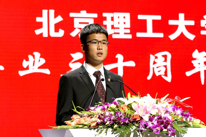 管理学院郎志正教授作为教师代表发言。他表示今天我国的发展,特别是军事实力的显著提升,离不开北理工广大师生和校友的大力奉献。他希望校友们,在如今经济转型时期的新常态发展模式下,遵循“笃志、知命、融合、淡欲”原则,以更好地适应经济转型的新时代要求,继续为中国经济发展做贡献,为母校争荣誉。